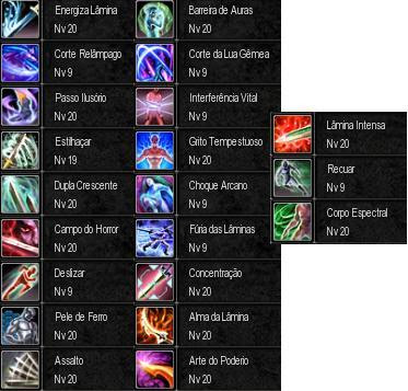 Furia das Lâminas: Seu segundo braço. Não deixe de comprar. Dano ótimo. Quando se referem a GM, é ela, já que é a única skill que você ganha na classe de Grão Mestre.